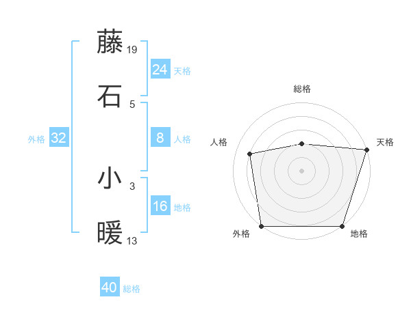 藤石 小暖さんを姓名の画数から五運を鑑定