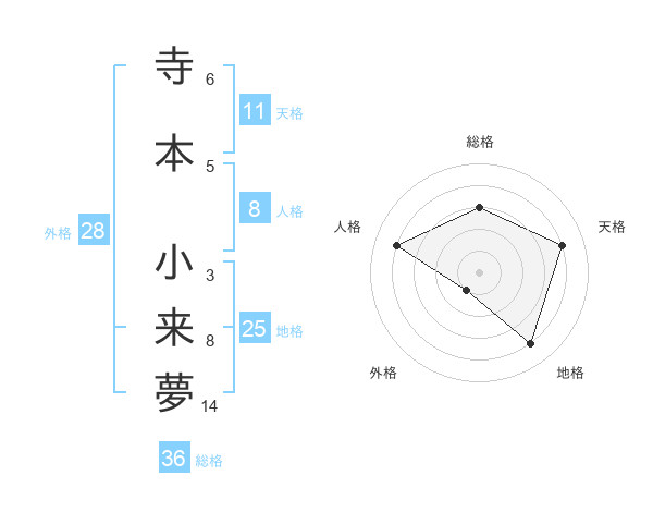 寺本 小来夢さんの天格は11画の4点!