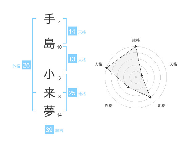 手島 小来夢さんを姓名の画数から五運を鑑定