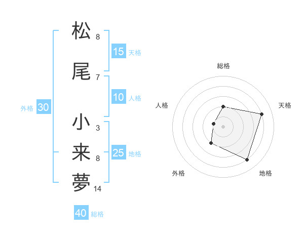 松尾 小来夢さんの天格は15画の4点!