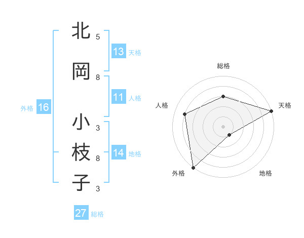 北岡 小枝子さんを姓名の画数から五運を鑑定