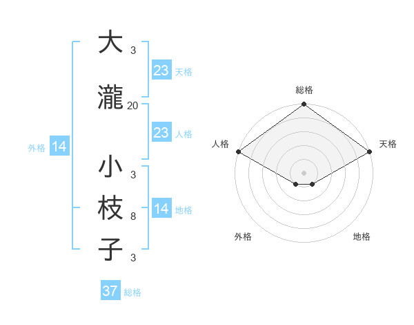 大瀧 小枝子さんを姓名の画数から五運を鑑定