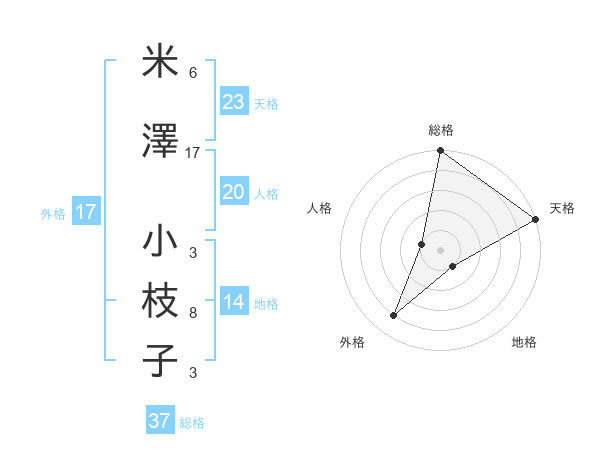 米澤 小枝子さんの総格は37画の5点