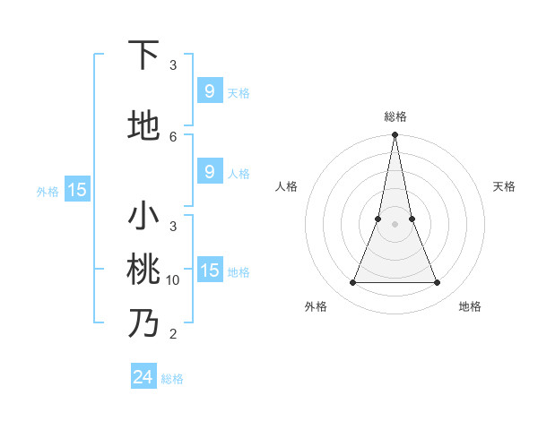 下地 小桃乃さんの総格は24画の5点