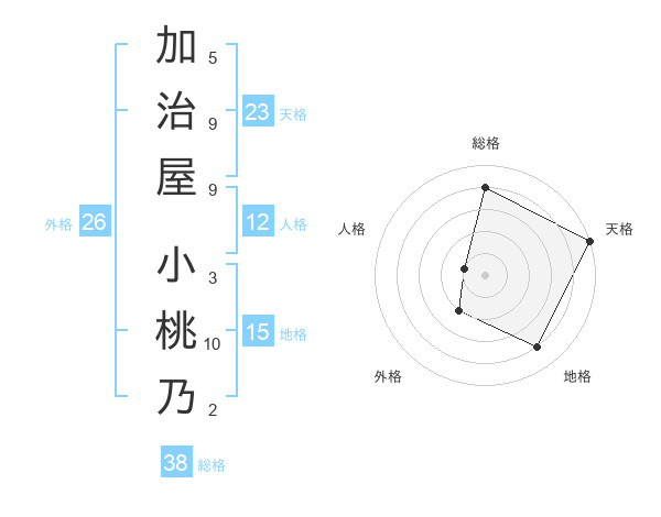 加治屋 小桃乃さんの総格は38画の4点