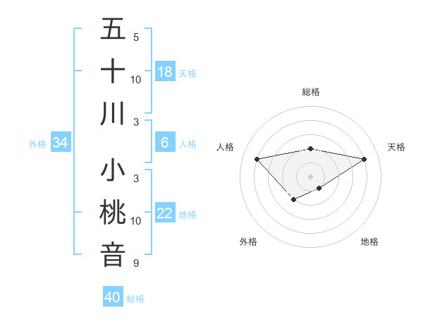 五十川 小桃音さんの総格は40画の2点!
