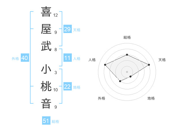 喜屋武 小桃音さんを姓名の画数から五運を鑑定