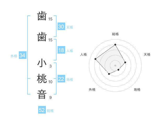 歯歯 小桃音さんを姓名の画数から五運を鑑定