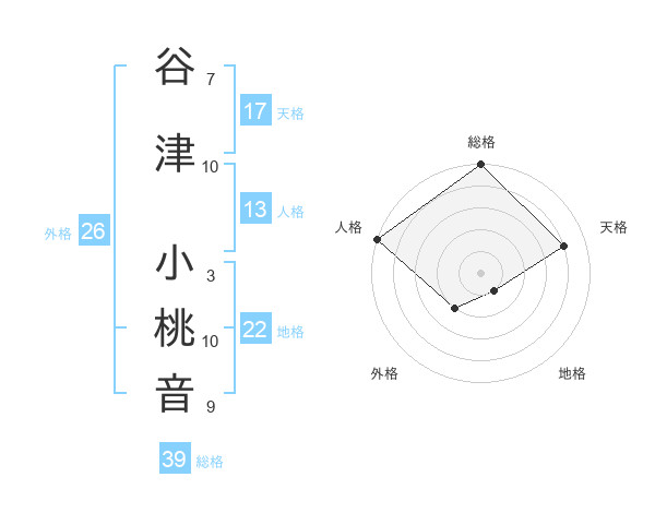 谷津 小桃音さんを姓名の画数から五運を鑑定