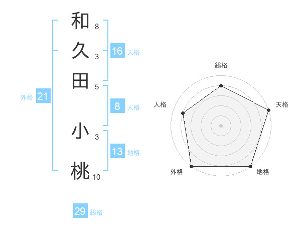 和久田 小桃さんの総格は29画の4点!