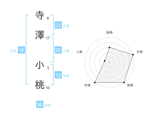 寺澤 小桃さんの天格は23画の5点!