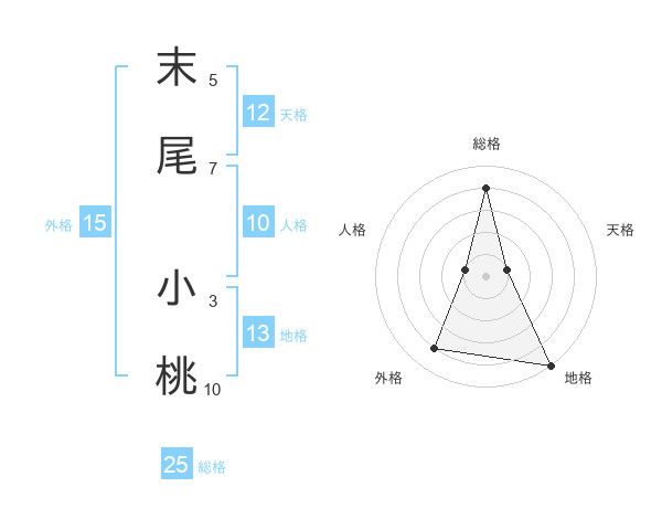 末尾 小桃さんを姓名の画数から五運を鑑定