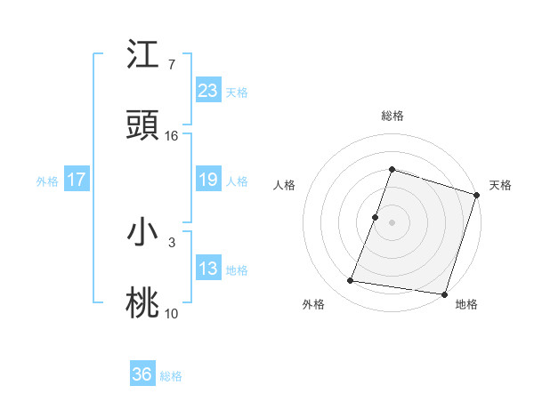 江頭 小桃さんの天格は23画の5点!