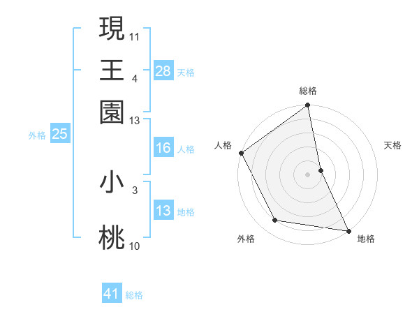 現王園 小桃さんを姓名の画数から五運を鑑定