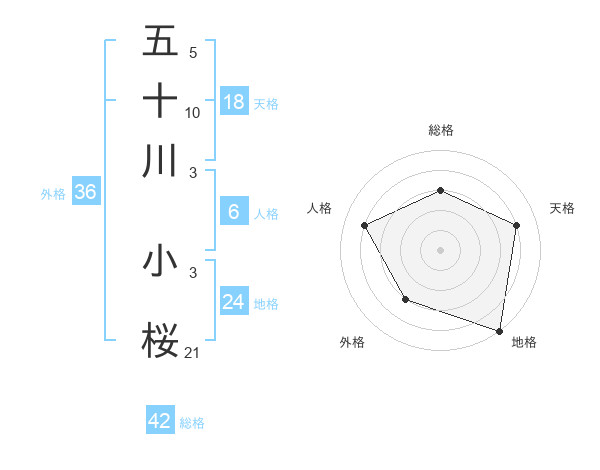 五十川 小桜さんを姓名の画数から五運を鑑定