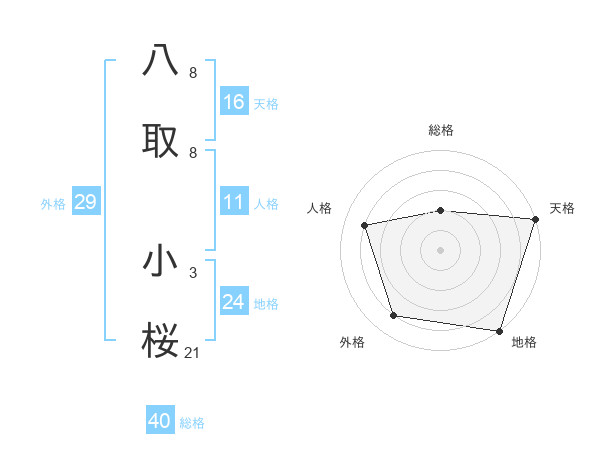 八取 小桜さんの総格は40画の2点!