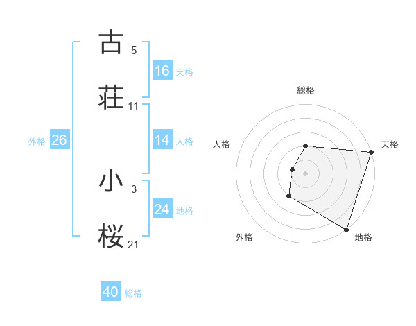 古荘 小桜さんを姓名の画数から五運を鑑定