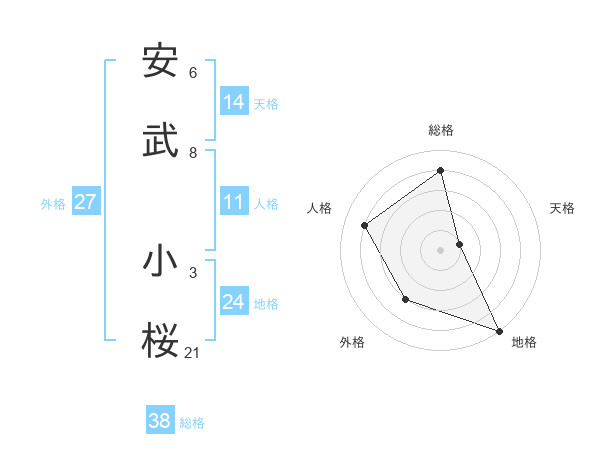 安武 小桜さんの総格は38画の4点!