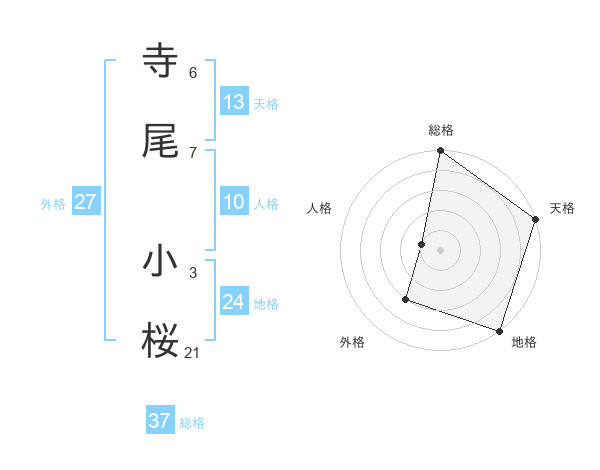 寺尾 小桜さんの総格は37画の5点!