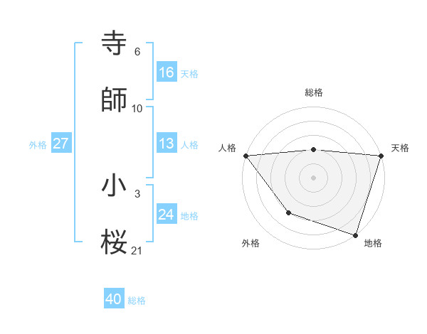 寺師 小桜さんの総格は40画の2点!