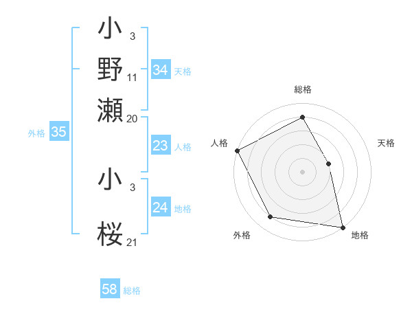 小野瀬 小桜さんの外格は35画の4点!