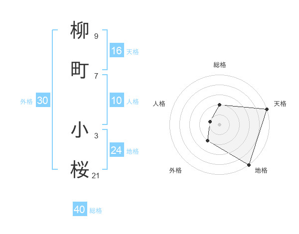 柳町 小桜さんの総格は40画の2点!