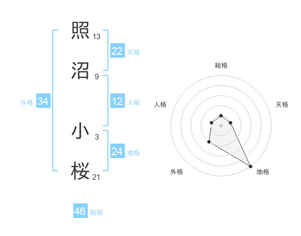 照沼 小桜さんを姓名の画数から五運を鑑定