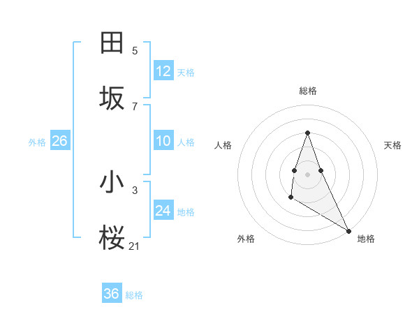 田坂 小桜さんを姓名の画数から五運を鑑定