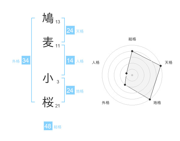 鳩麦 小桜さんの総格は48画の4点!