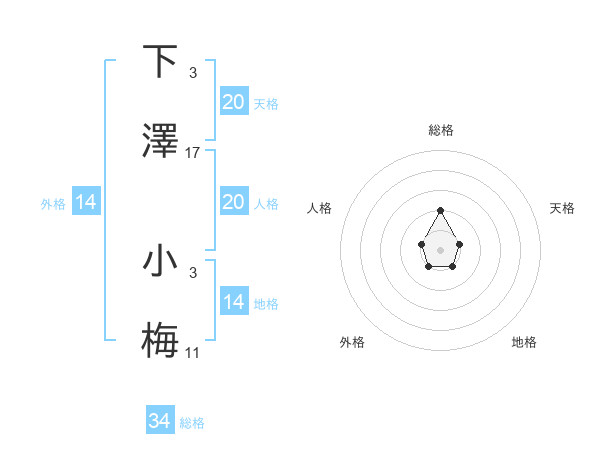 下澤 小梅さんの総格は34画の2点!
