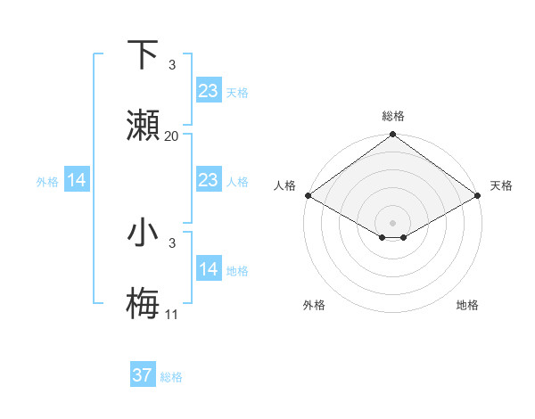 下瀬 小梅さんの総格は37画の5点!