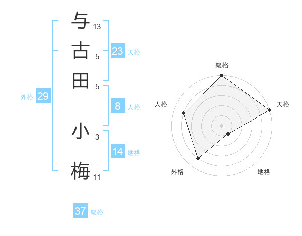 与古田 小梅さんの総格は37画の5点