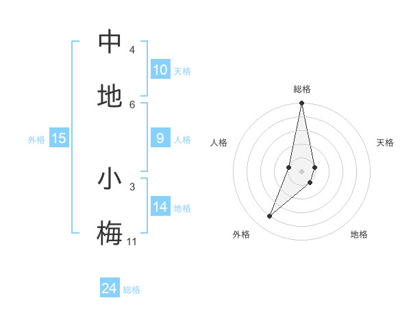 中地 小梅さんの総格は24画の5点!