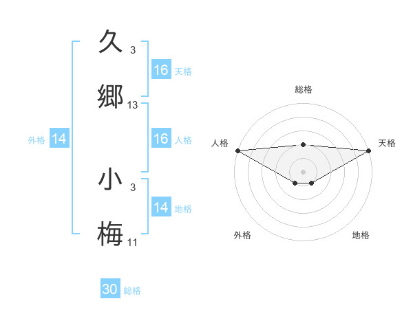 久郷 小梅さんを姓名の画数から五運を鑑定