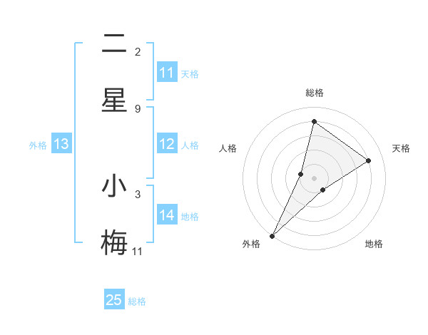 二星 小梅さんの総格は25画の4点!