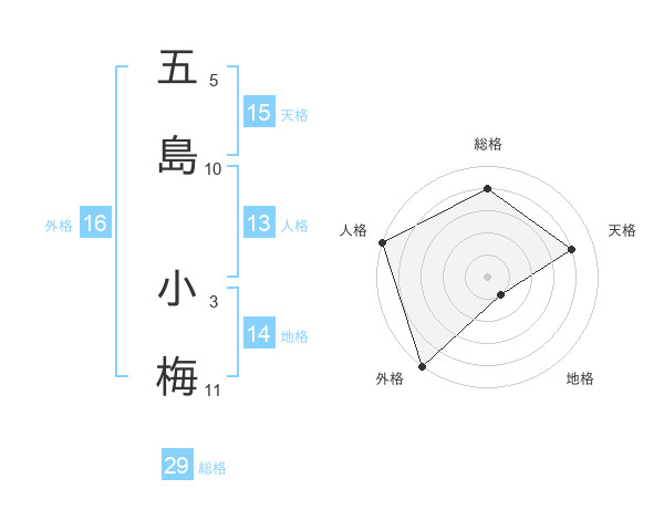 五島 小梅さんの外格は16画の5点!