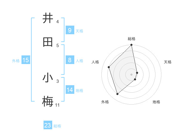井田 小梅さんの総格は23画の5点!