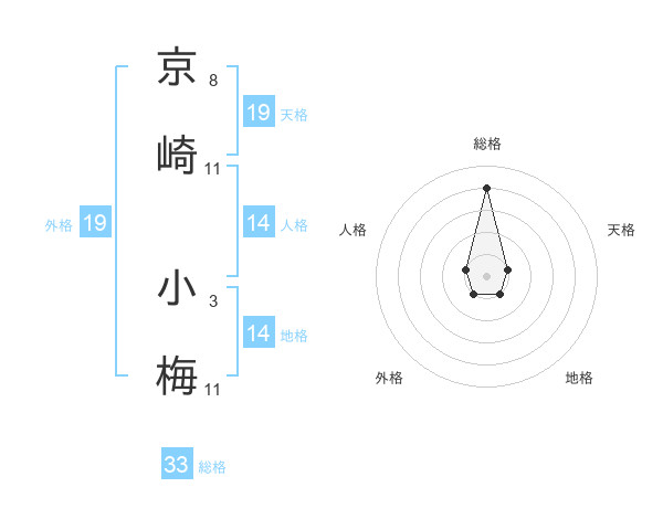 京崎 小梅さんの天格は19画の1点!