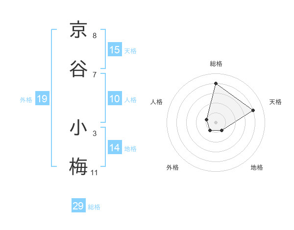 京谷 小梅さんの総格は29画の4点!
