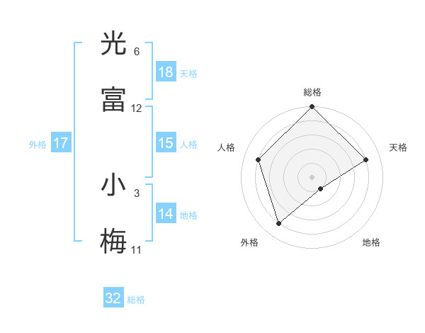 光富 小梅さんの天格は18画の4点!