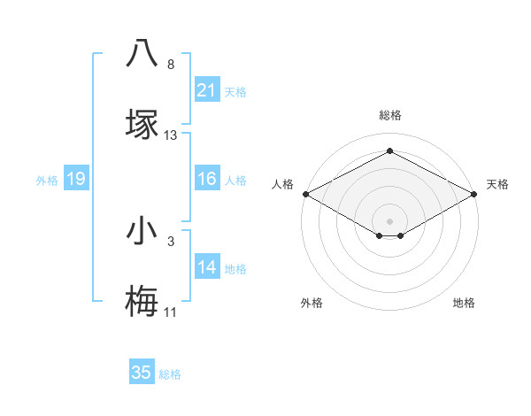 八塚 小梅さんの総格は35画の4点!