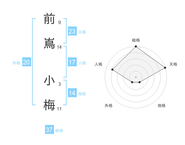 前嶌 小梅さんの総格は37画の5点!