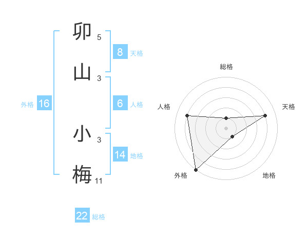 卯山 小梅さんの外格は16画の5点!