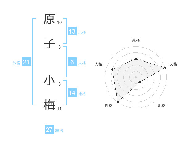 原子 小梅さんの外格は21画の5点!