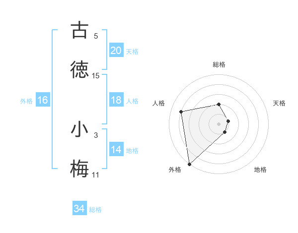 古徳 小梅さんの天格は20画の1点!