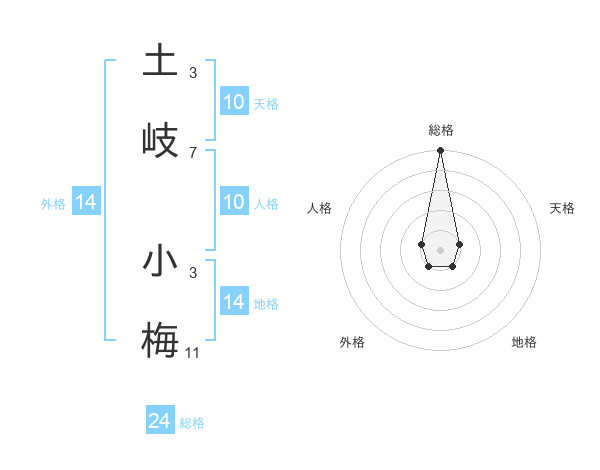 土岐 小梅さんを姓名の画数から五運を鑑定
