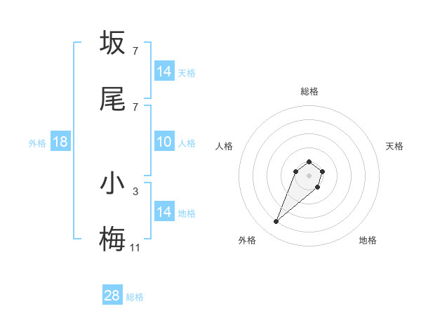 坂尾 小梅さんを姓名の画数から五運を鑑定