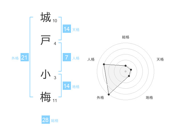 城戸 小梅さんを姓名の画数から五運を鑑定