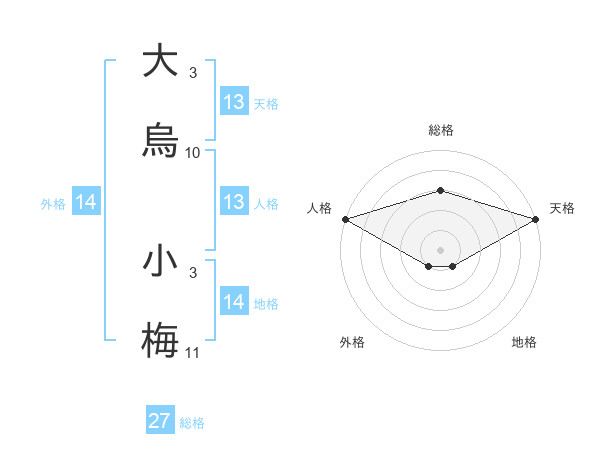 大烏 小梅さんの天格は13画の5点!