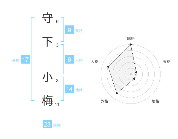 守下 小梅さんの総格は23画の5点!